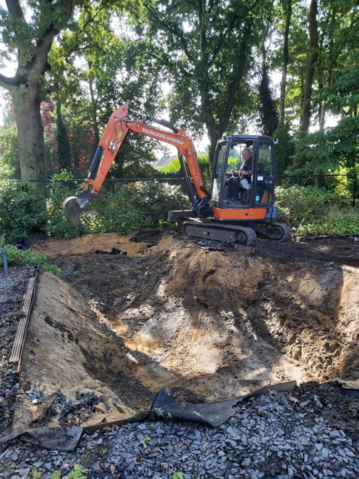 Onlangs is door Raijmakers B.V. een grote vijver verwijderd uit een tuin aan de Cor Gehrelslaan in Eindhoven.